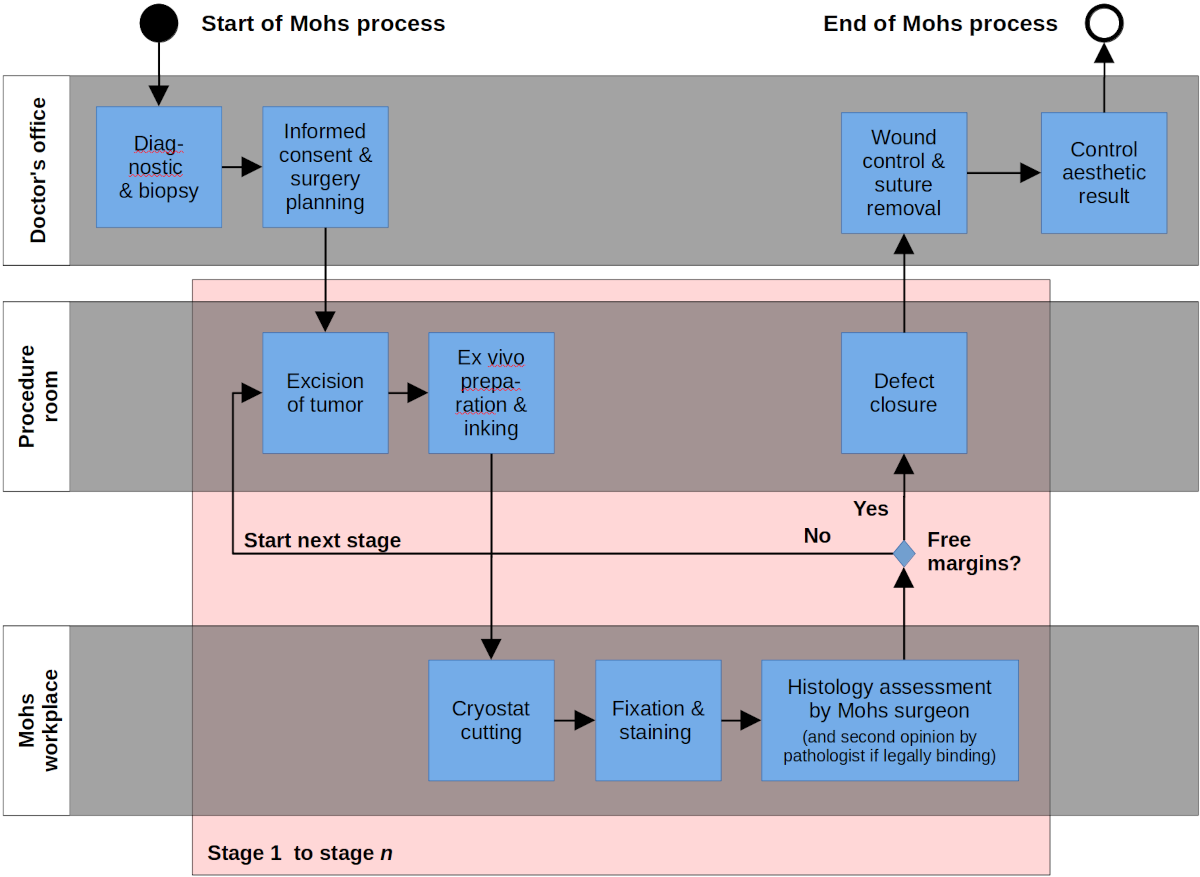 Essential aspects of Mohs Surgery from the process point of view are: