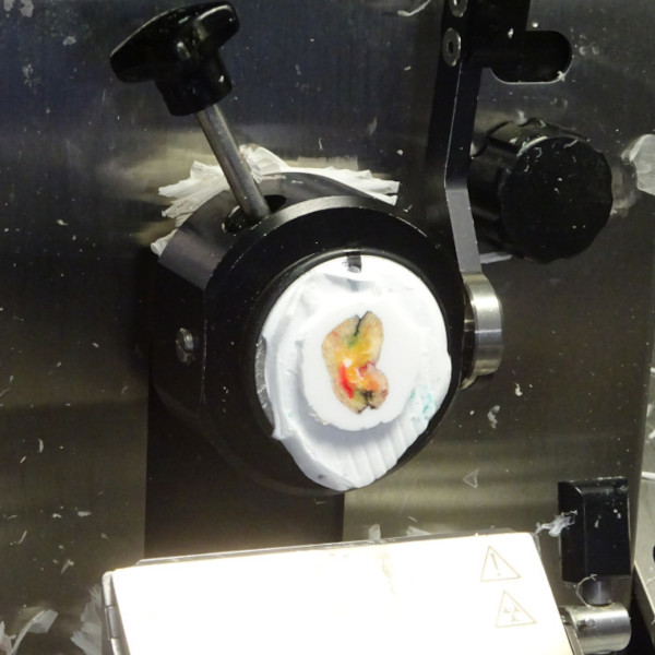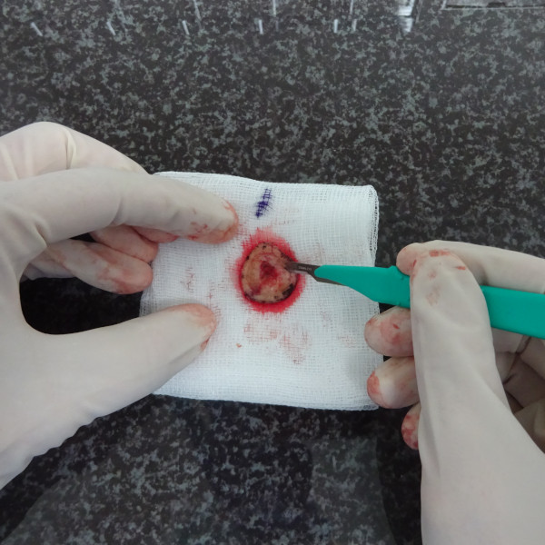 In the frozen section procedure, 100% of the surgical margins of the specimen are examined under a microscope by a dermatosurgeon and, if necessary, additionally confirmed by a pathologist, depending on the legal situation in the respective country. If the tumor has not yet been completely excised, in a next stage little more tissue is removed until all the margins are 100% tumor free.