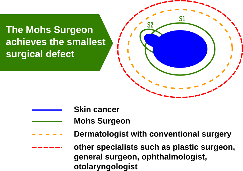 This step-by-step surgical technique results in the smallest possible surgical defect compared to ordinary skin cancer surgery. Mohs surgery, performed by a dermatologist, is thus superior to other medical specialists and plastic surgeons in terms of the size of the wound defect.